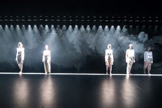 As a starting point for this creation, director and scenographer Cédric Delorme-Bouchard designed a light device, a wall of light and fog. With this scenography as a playground, he composed a score for seven performers and dancers. The cutting of bodies by light then becomes a sensitive and phenomenological adventure, offering spectators a series of choreographic acts of magnificent strangeness oscillating between horror and the sublime, and exposing the fragility of the human condition.